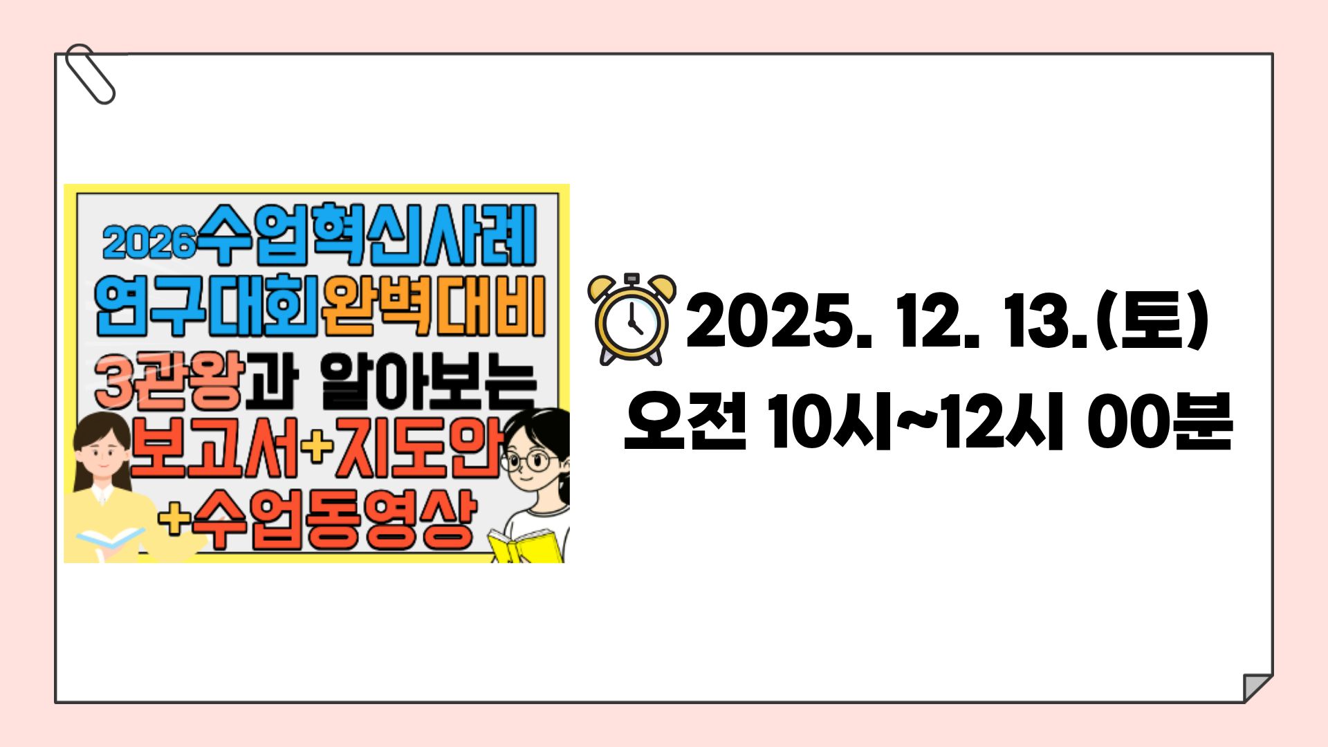 [심화] 2026 수업혁신사례연구대회 완벽대비(3관왕과 알아보는 보고서+지도안+수업동영상)