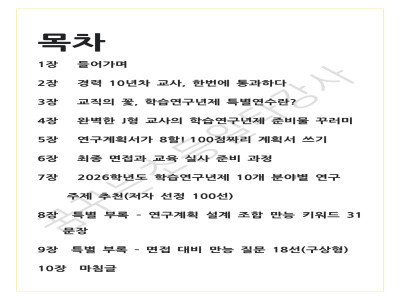 저자의 책 구매 후, 구독과 함께 우수 리뷰를 남겨주는 선생님 중 10분을 선발하여 '학습연구년제 특별연수 연구계획서 컨설팅'을 무료로 진행할 예정입니다.
