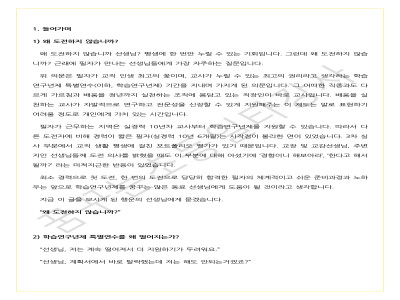그리고 교육 현장에서 헌신하고 계시나 많은 실적이 있음에도 계속해서 이유 없이 떨어지신다고 생각하여 학습연구년을 포기하는 선생님,