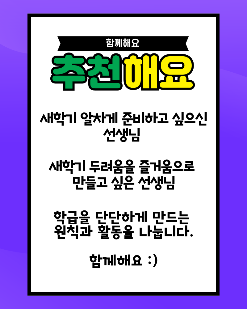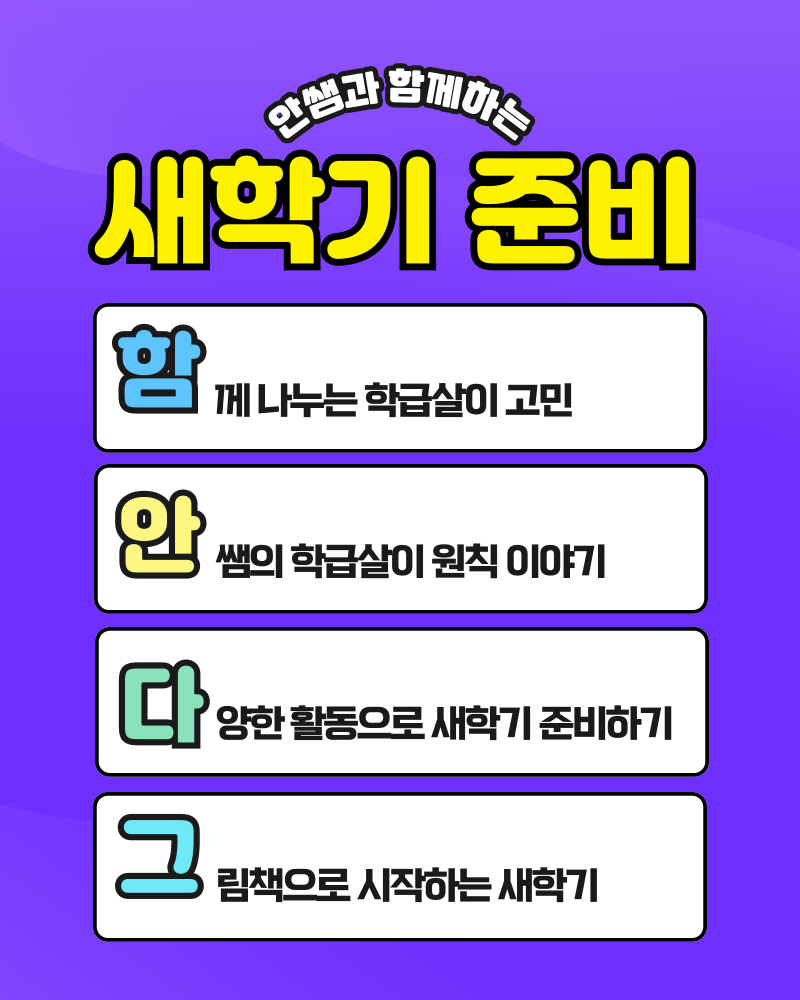 바로 새학기 학급 탄탄한 학급 만들기 프로젝트가 그 핵심입니다.