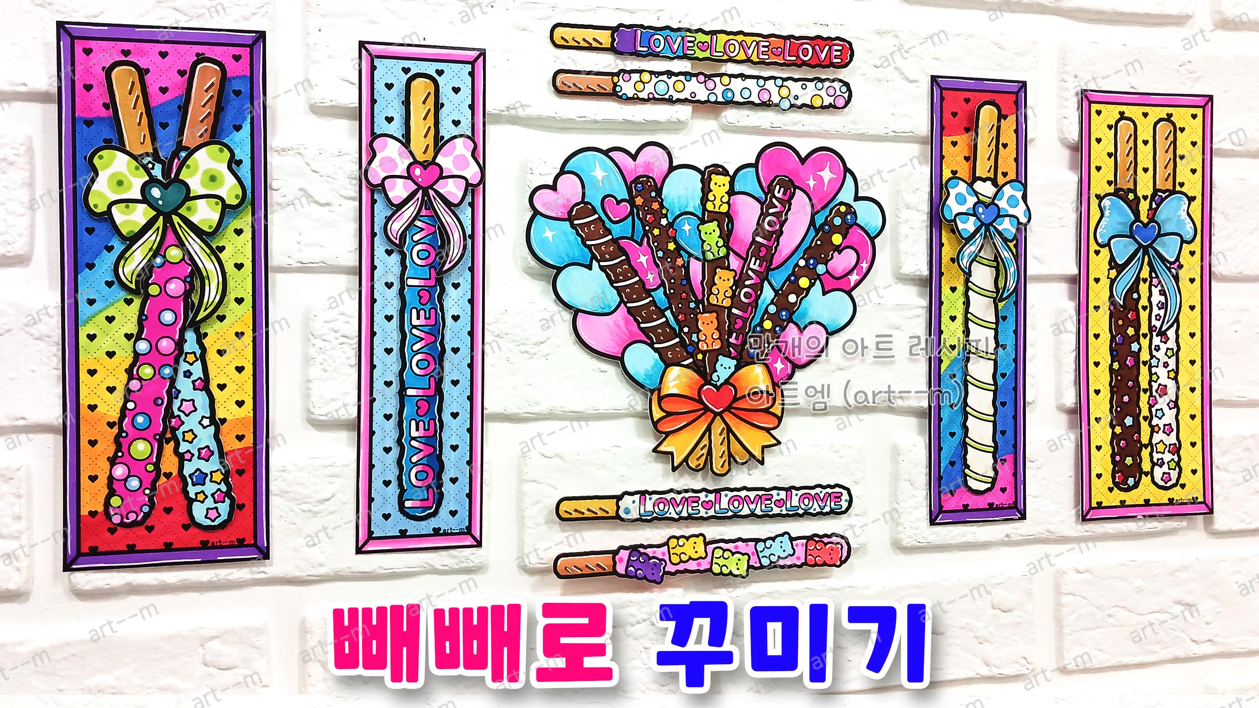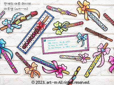 막대 과자와 하트로 꾸며 보는