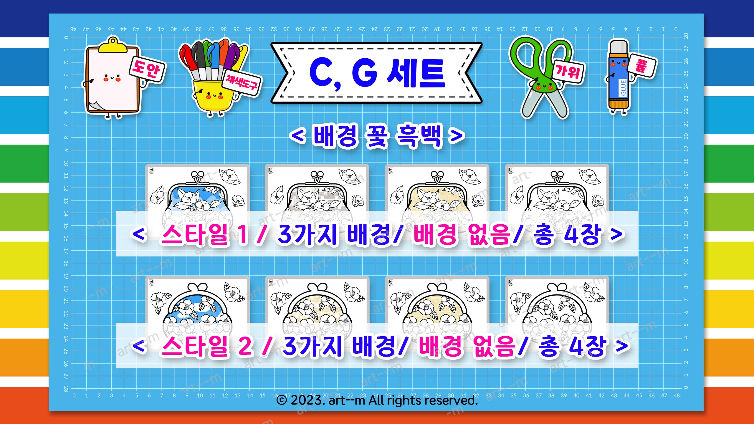3) C, G 세트(각 4장) 색칠도안