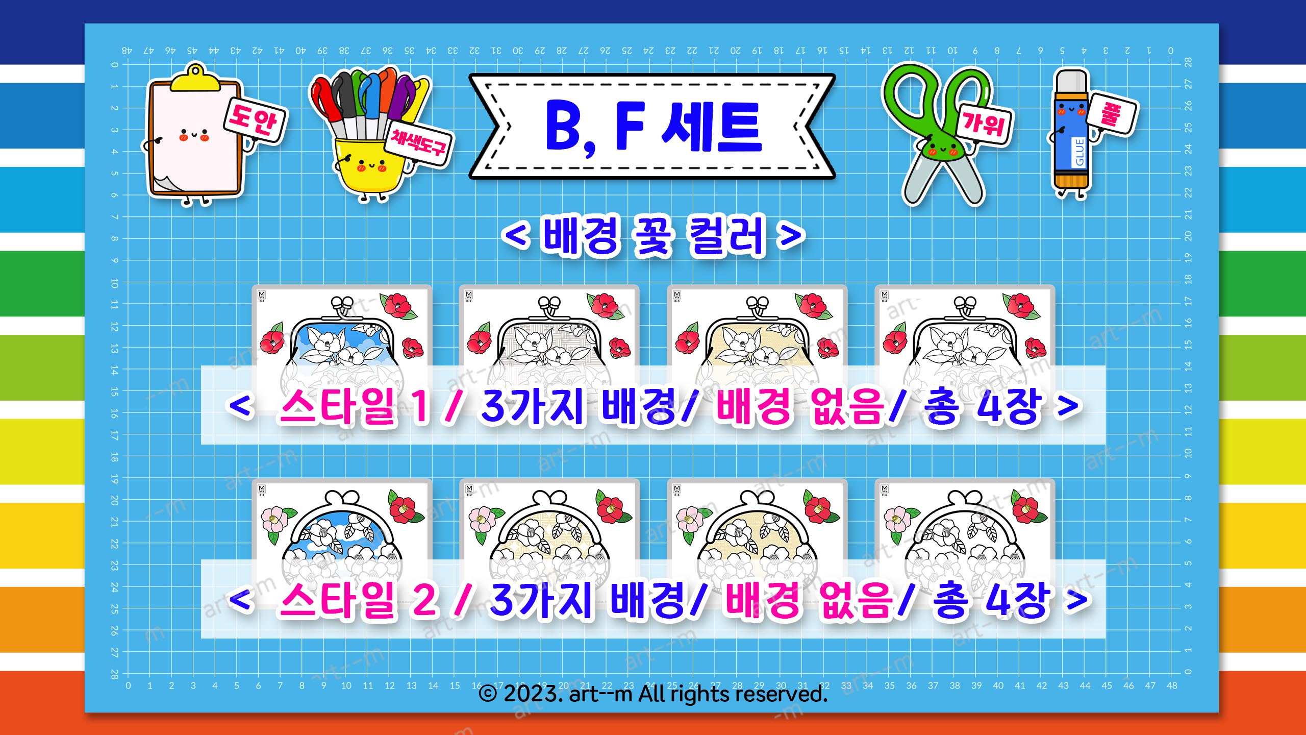 2) B, F 세트(각 4장) 색칠도안