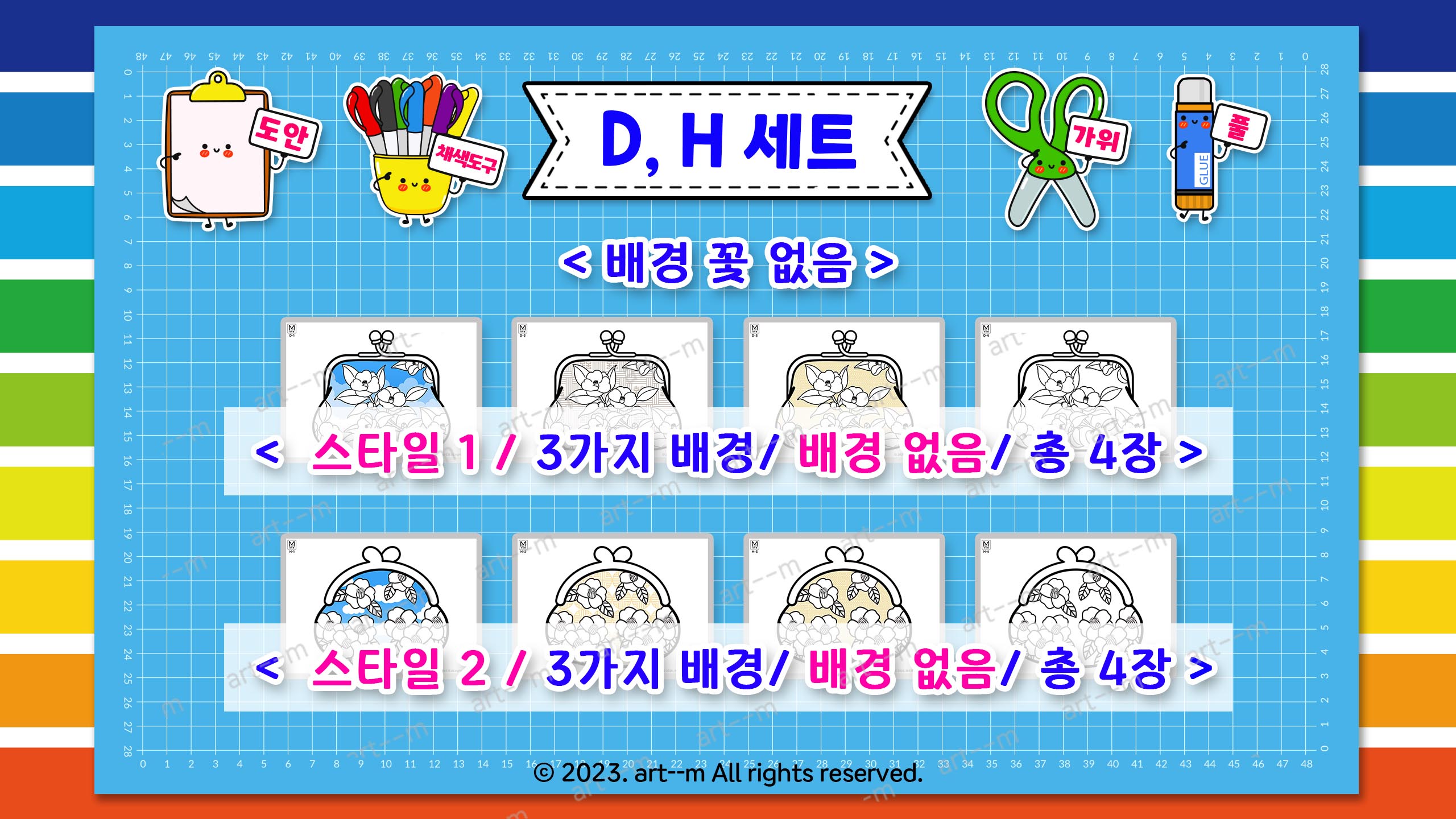 4) D, H 세트(각 4장) 색칠도안