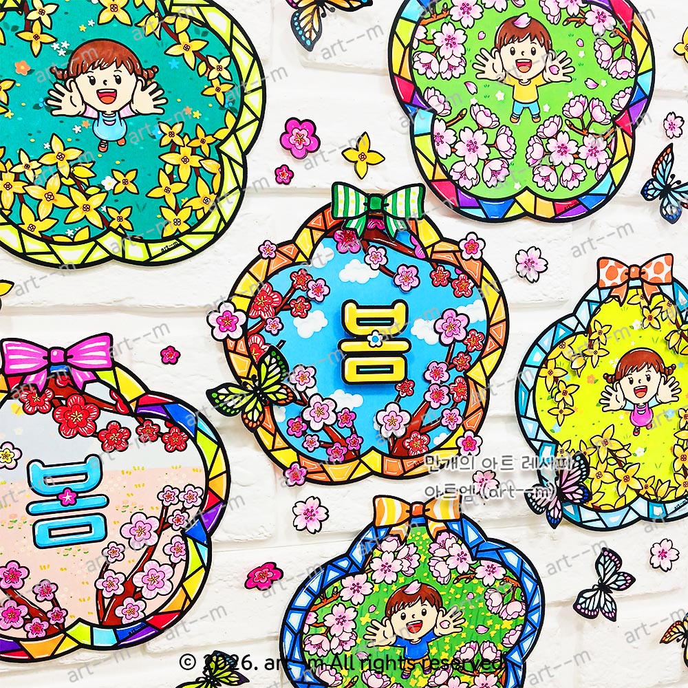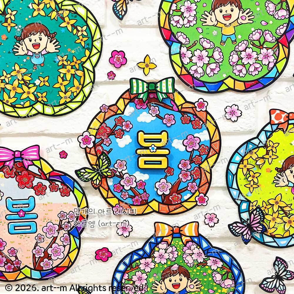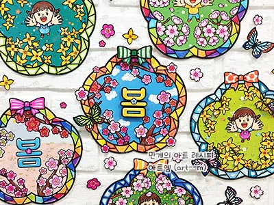 117. 봄꽃 액자 꾸미기/ 벚꽃 색칠하기/ 개나리 도안/ 매화 리스 만들기/ 봄미술/ 봄 미술활동/ 스테인드글라스/ 봄 환경 꾸미기/ 돌봄교실 활동지