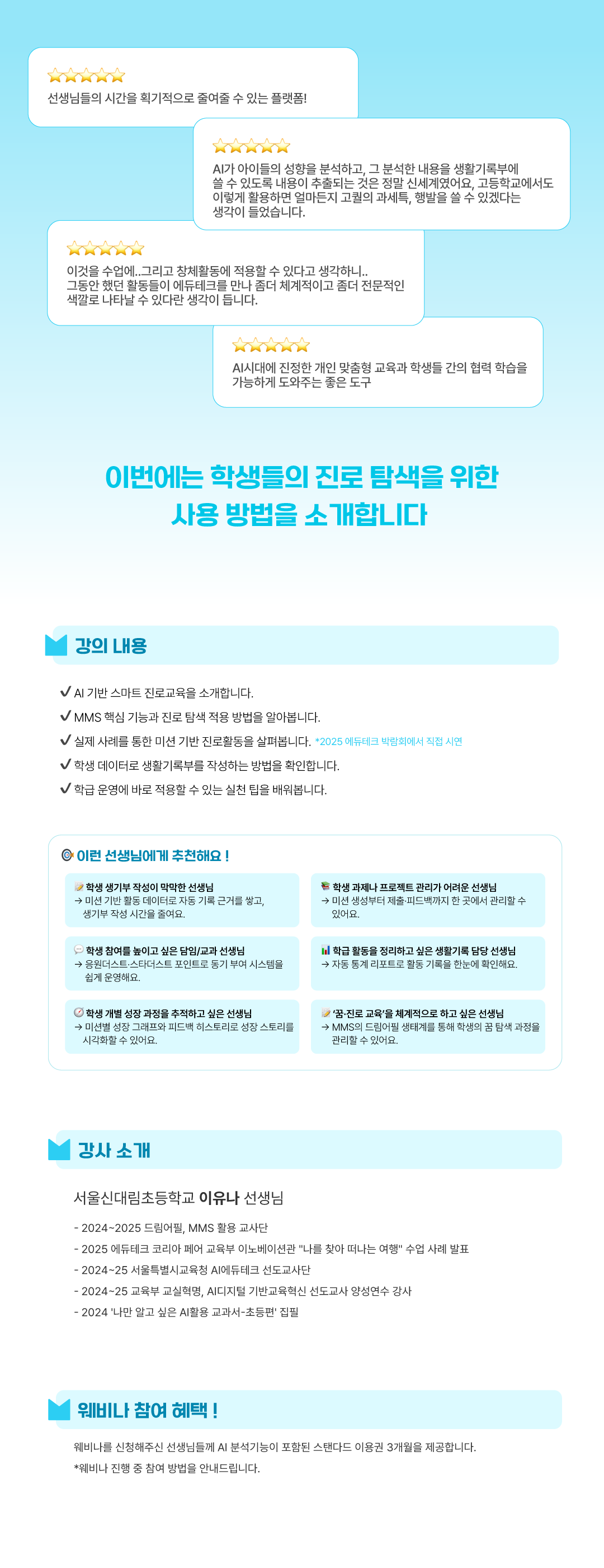 모임 소개 : 학생들에게 진로 탐색을 위한 미션을 부여하고 실천 결과를 AI로 분석하여 진로 찾아보고 생기부에 활용하는 과정을 공유합니다.