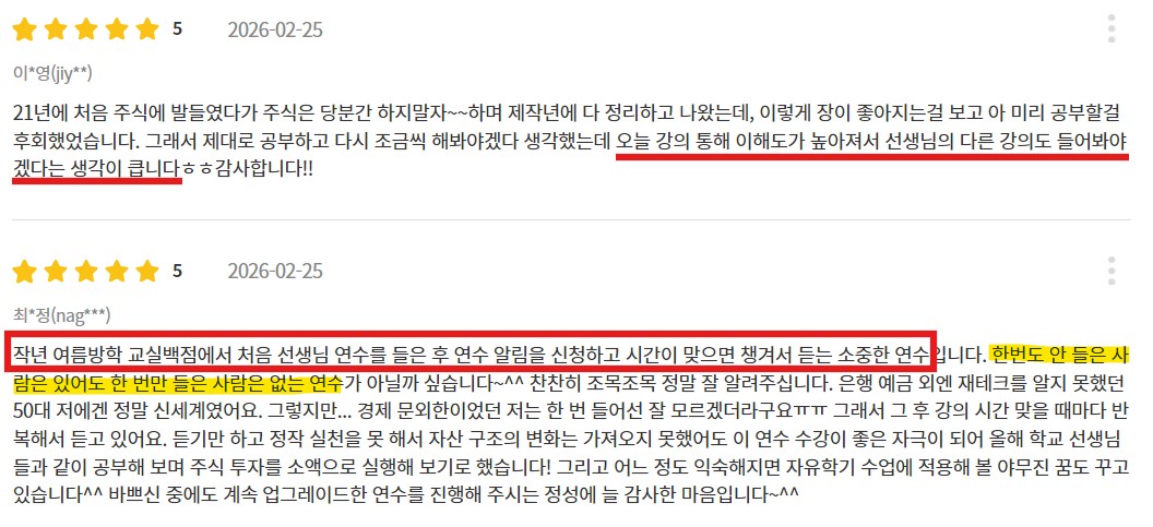 실제 수강자 만족도