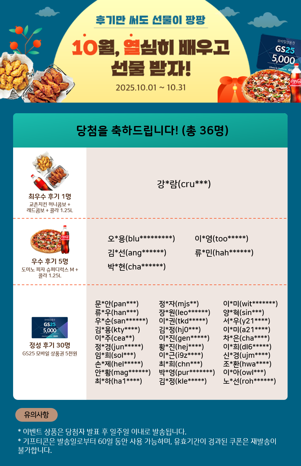 제목 [후기이벤트] 🤓 10월, 열심히 배우고 선물 받자! 🎁 10월 후기 이벤트❤️ // 당첨자 발표