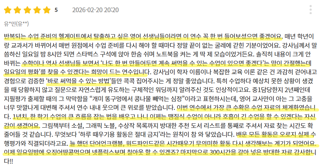 ↓↓아래에서 선생님들의 후기를 한번 감상해주시기 바랍니다. 수강해주신 선생님들께 감사드립니다! ^^