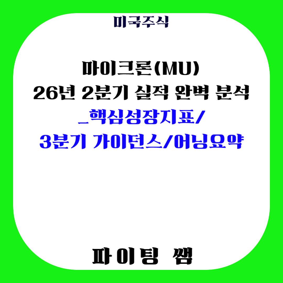 마이크론(MU) 26년 2분기 실적 완벽 분석_핵심성장지표 / 26회계연도 3분기 가이던스