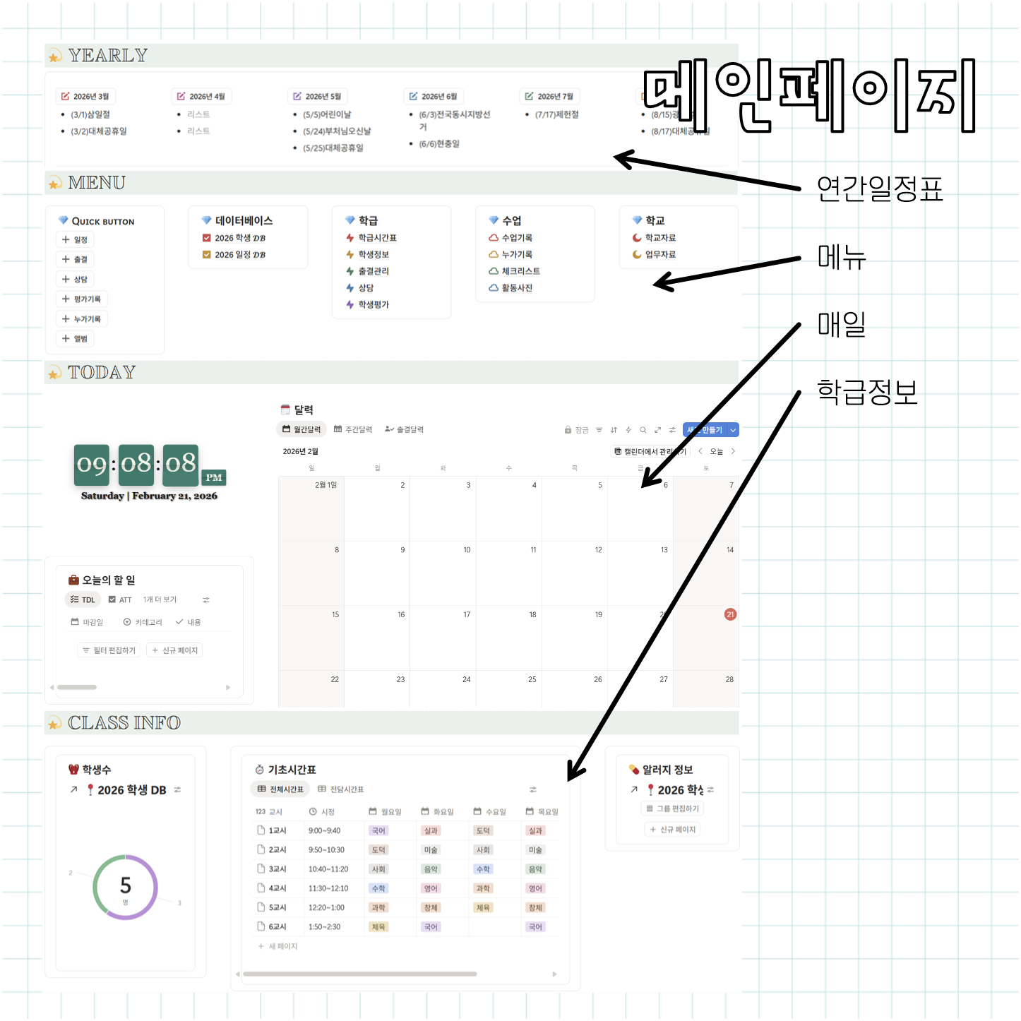 초등학교 선생님이 직접 쓰려고 만든 2026 노션 교무일지 ✏️