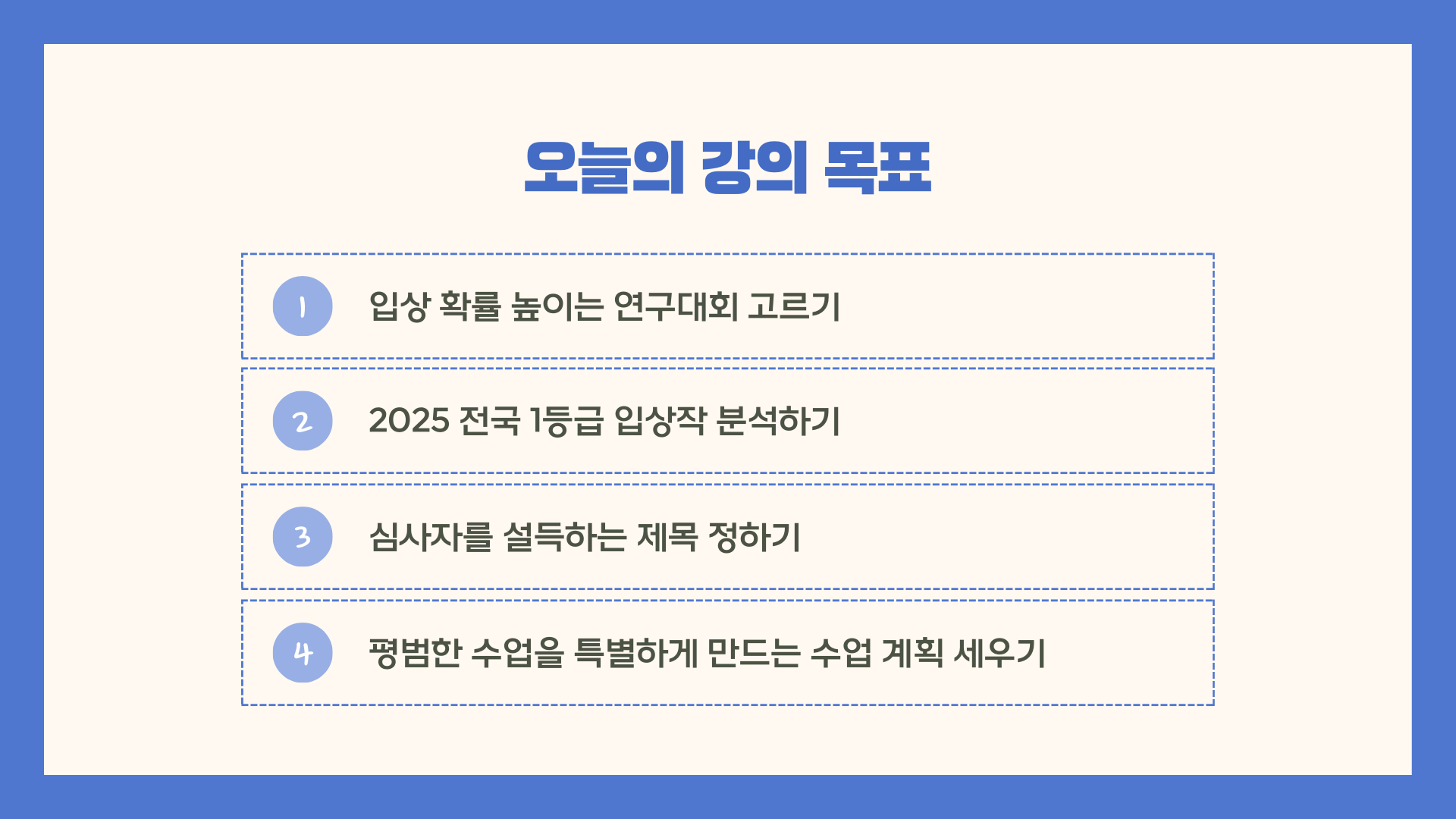2025 전국 1등급과 함께 연구대회 준비하기 - 시작이 반이다