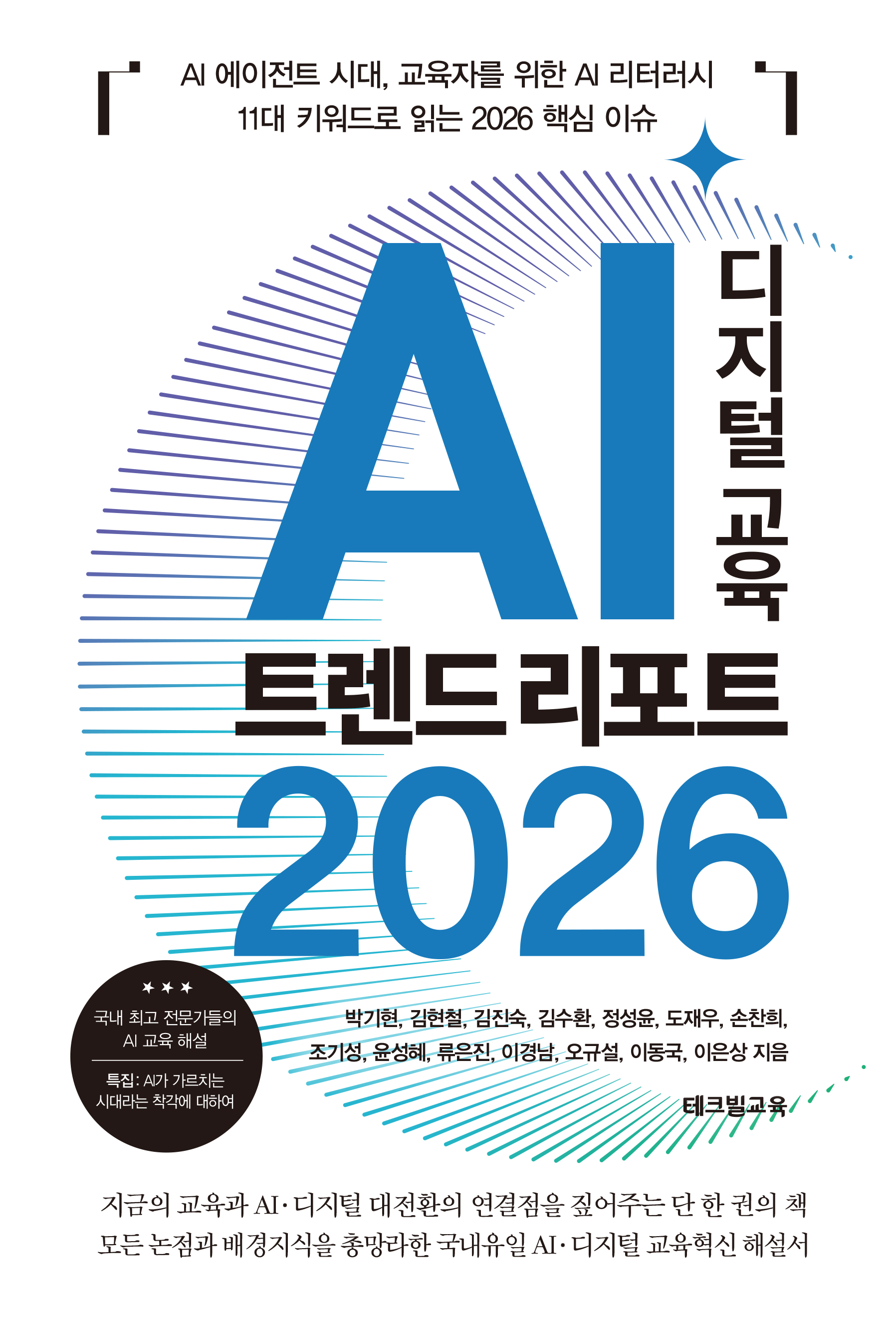2026년, 교육과 AI 공존의 조건들. 교육은 무엇을 어떻게 지키고 변화시켜야 하는가 인공지능 기본법부터 AI 기반 서논술형 평가까지. 2026 핵심 이슈 해설 2025년은 생성형 AI와 AI 기반 디지털 도구가 교실과 학교 업무에 본격적으로 스며들어 현실의 도구로 자리 잡은 해였다. 수업평가행정의 장면이 빠르게 바뀐 만큼 기대와 불안도 함께 커졌고, AI 에이전트라는 그다음 변화의 흐름도 부상했다. 2026년은 인공지능 기본법이 시행되고 AI 기반 서논술형 평가가 본격화되는 등, AI가 사회 저변 더욱 깊숙히 자리 잡는다. 이와 함께 책임윤리데이터제도라는 공존의 조건을 정교하게 점검하며, 운영의 기준을 세워야 하는 해다. 그렇다면 교육의 방향키는 어디에 두어야 하는가? 《AI 디지털 교육 트렌드 리포트 2026》은 이 질문에서 출발했다. 실제적 AI 공존을 둘러싼 교육 정책과 윤리, 학습 데이터와 학습권, 교사 주도성과 학교 커뮤니케이션까지2026년 교육계가 마주한 핵심 쟁점을 3대 주제, 11대 키워드로 정리해 한눈에 조망한다. 공교육이 기술의 속도와는 다른 교육의 속도로 책임 있게 AI와 공존하기 위해 필요한 언어와 좌표를 짚어 해설하고, 현장에 유의미한 제언을 더한다. 2025년이 도입과 체감의 해였다면, 2026년은 판단과 정착의 해다. 교육자들이 교육적 판단의 자리를 분명히 세워 가는 과정을 돕기 위해, 엄선한 지식과 국내 최고 전문가들의 해설을 엮었다.
