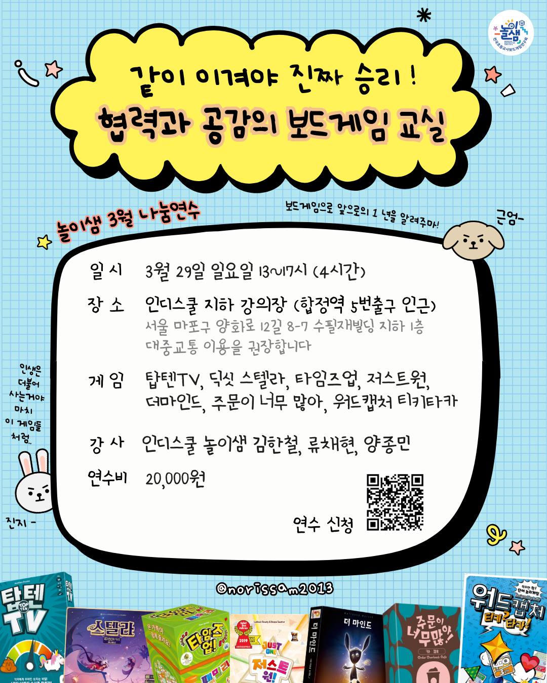 놀이샘에서 협력과 공감으로 교실을 더 즐겁게 만드는 보드게임 연수를 준비했습니다!