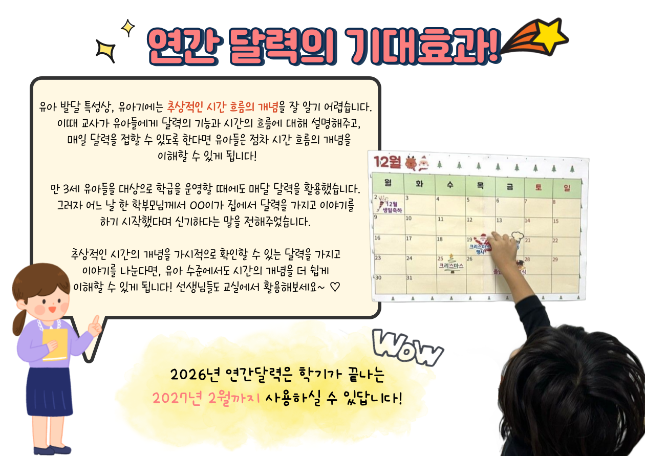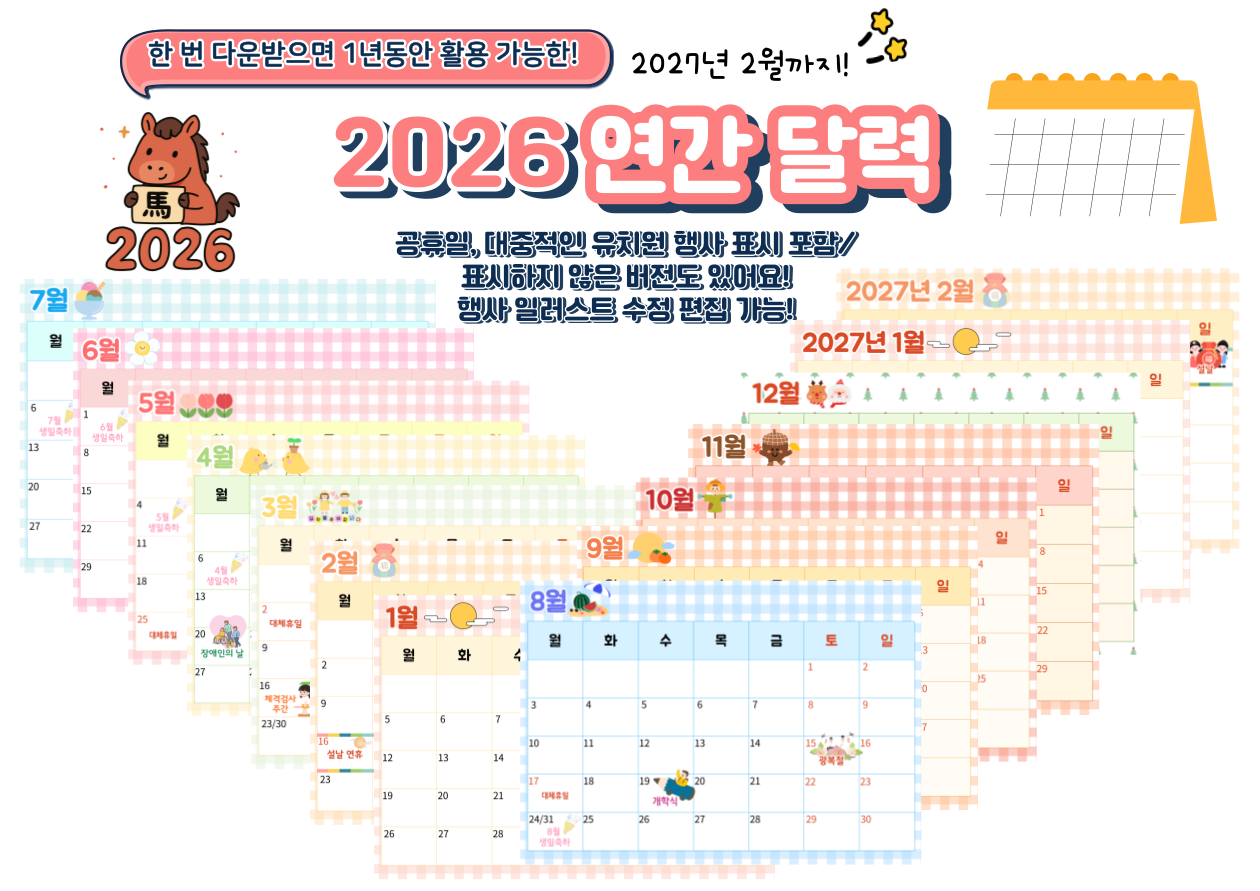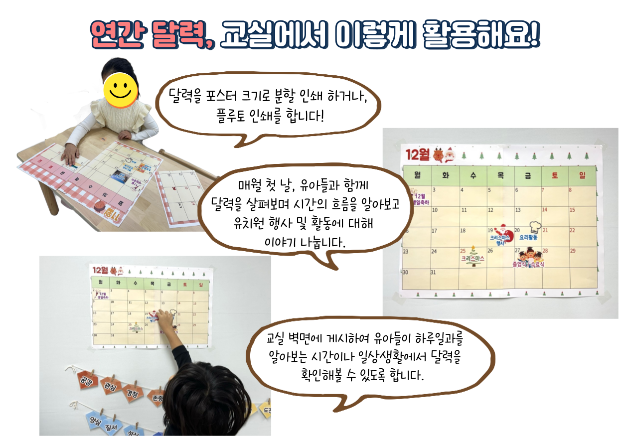 1년 동안 활용 가능한 2026 연간 달력! | 유치원 하루일과 수업 자료 활용 | 유치원 학급 환경 구성 | 유아 시간 흐름 개념 형성