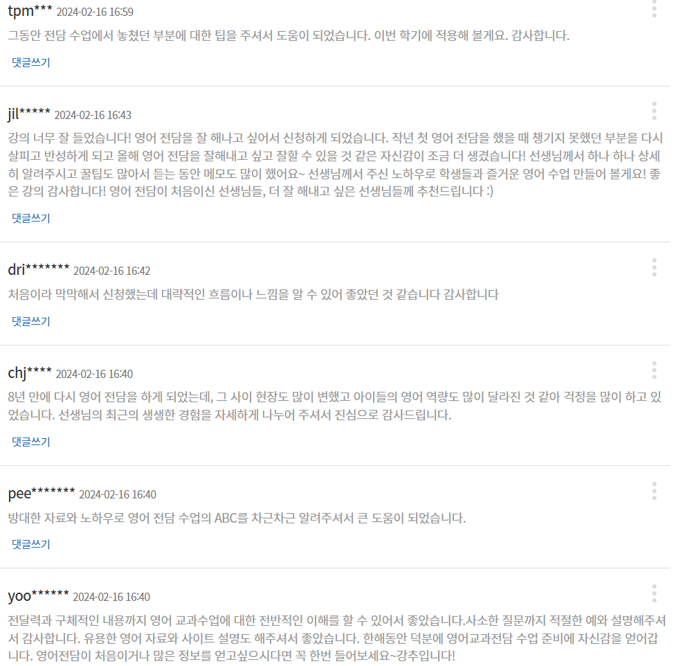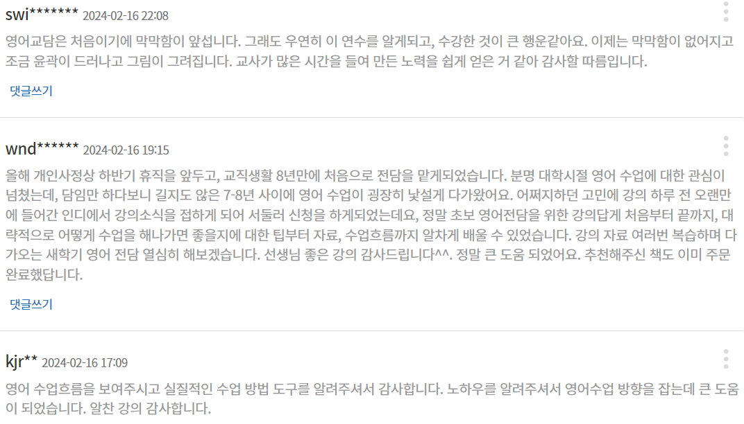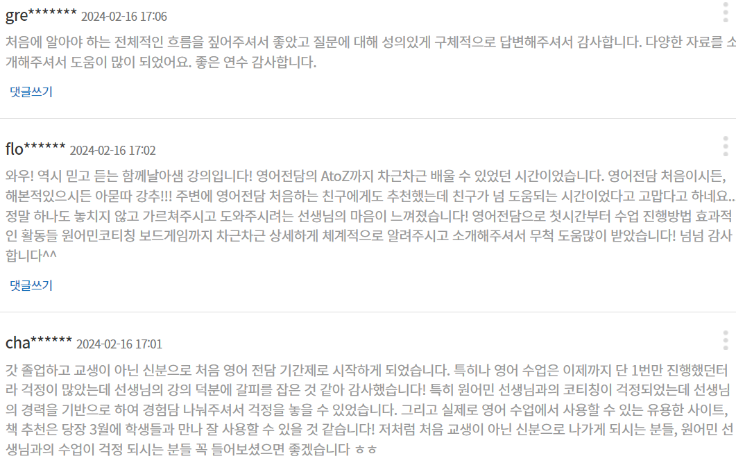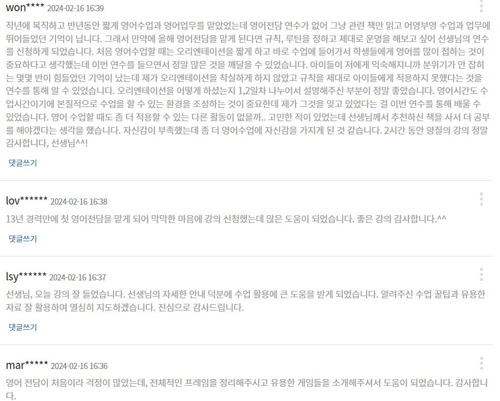 쌤모임 수강생들의 뜨거운 후기!! 도움이 많이 되셨다고 하시고 좋은 후기 많이 주셔서, 제 강의 의도가 잘 전달된 것 같아서 감사했습니다.