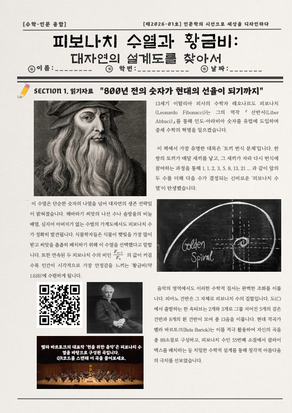 안녕하세요, 입시의 결과가 달라지는 수학-인문 융합 콘텐츠 브랜드 **'로그생'**입니다. 800년 전의 역사적 사료와 현대 음악의 거장 벨라 바르토크를 잇는 독보적인 탐구 학습지를 소개합니다.