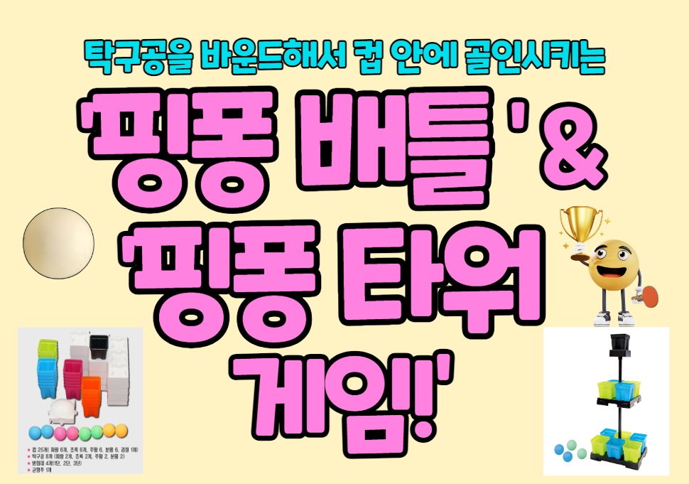 계란판과 탁구공을 활용한 여러가지 게임 후 '핑퐁 배틀 게임'과 '핑퐁 타워 게임'으로 확장해