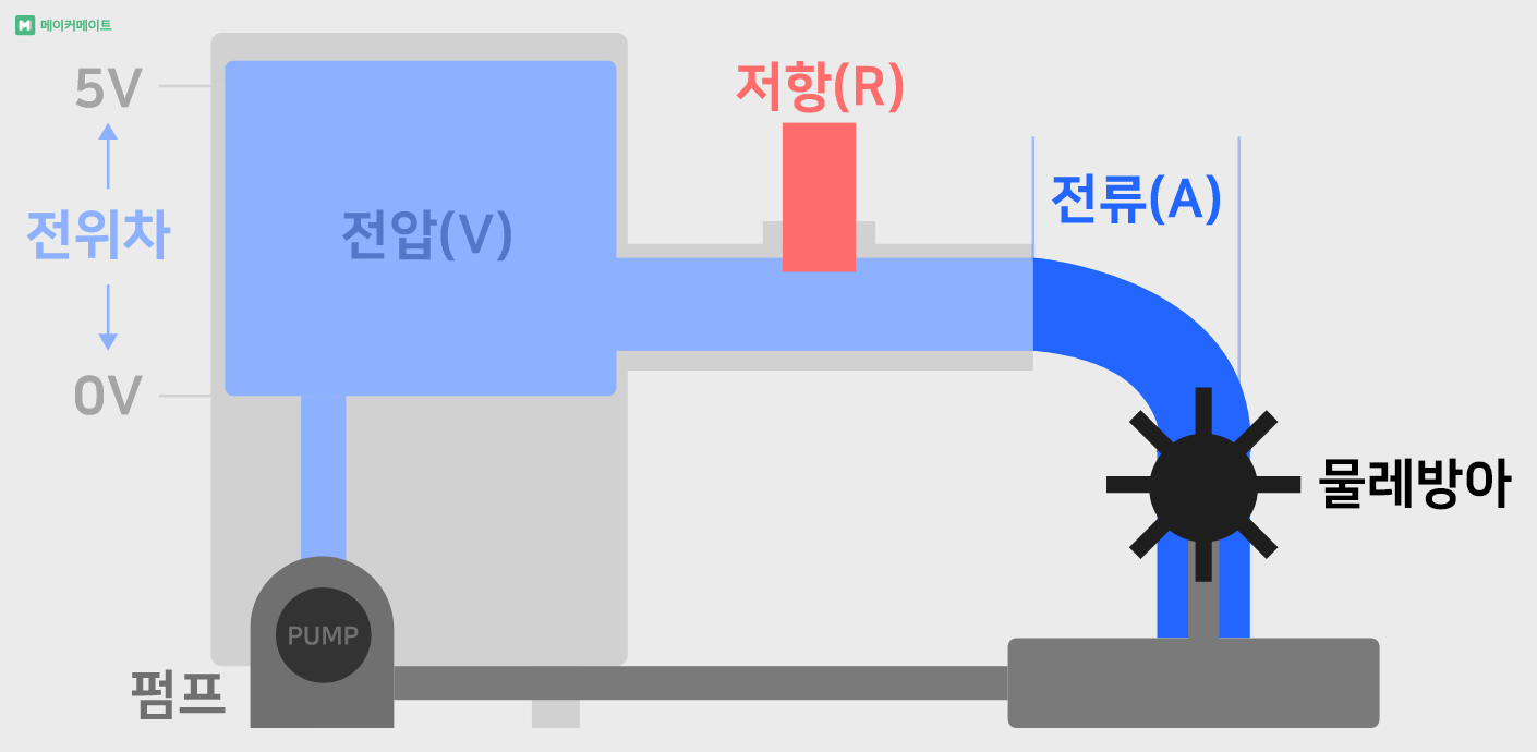 1. 아두이노(펌프)는 전압을 만들어 냅니다.