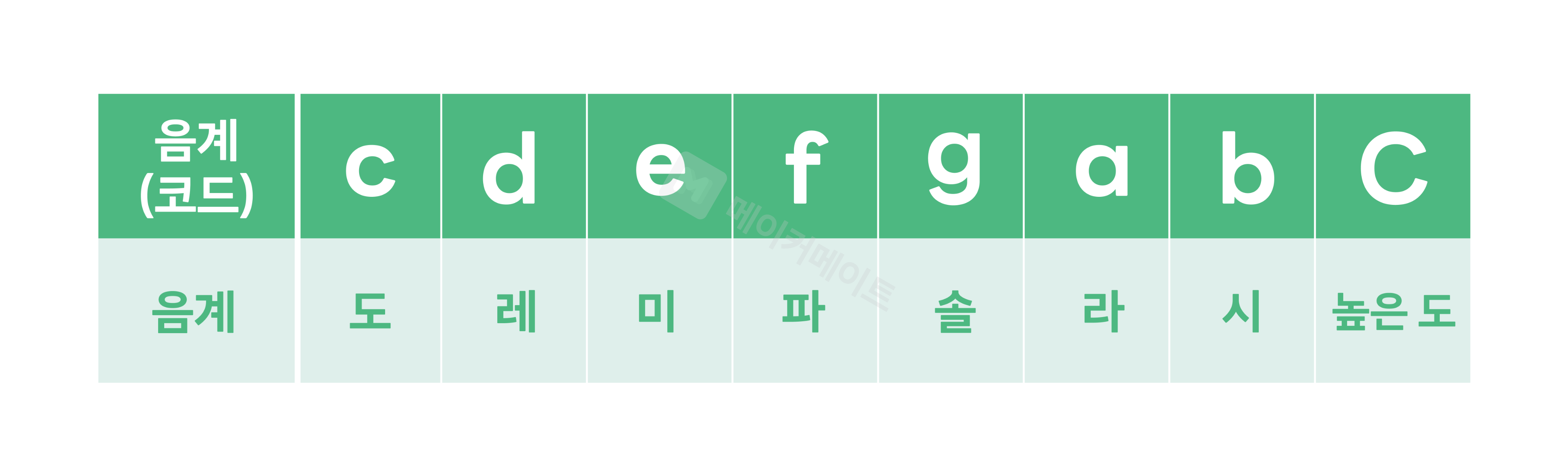 | 10번째 줄 | 'c' 코드를 작성하여 '도' 음계를 출력합니다. |