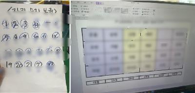 그래서 생각해낸 방법이 '내손자리뽑기'로 아이들이 직접 원하는 숫자를 고르면 끝난 후, 선생님은 미리 한글파일에 랜덤으로 자리를 배정해둔 칸에 아이들 이름을 입력하면서 실시간으로 자리를 공개하는 방법이에요! 내돈내산처럼 아이들이 직접 번호를 골랐다는 점이 포인트랍니다.