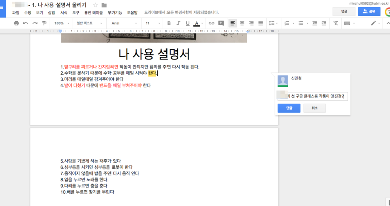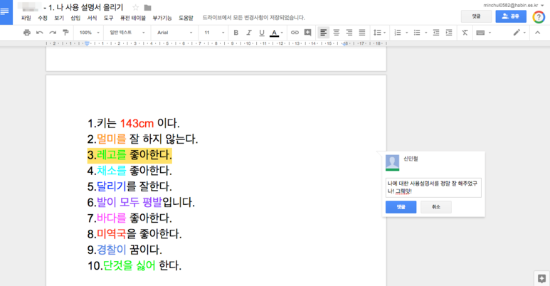 파일을 보면서 이렇게 댓글로 실시간 피드백을 해줄 수 있습니다.