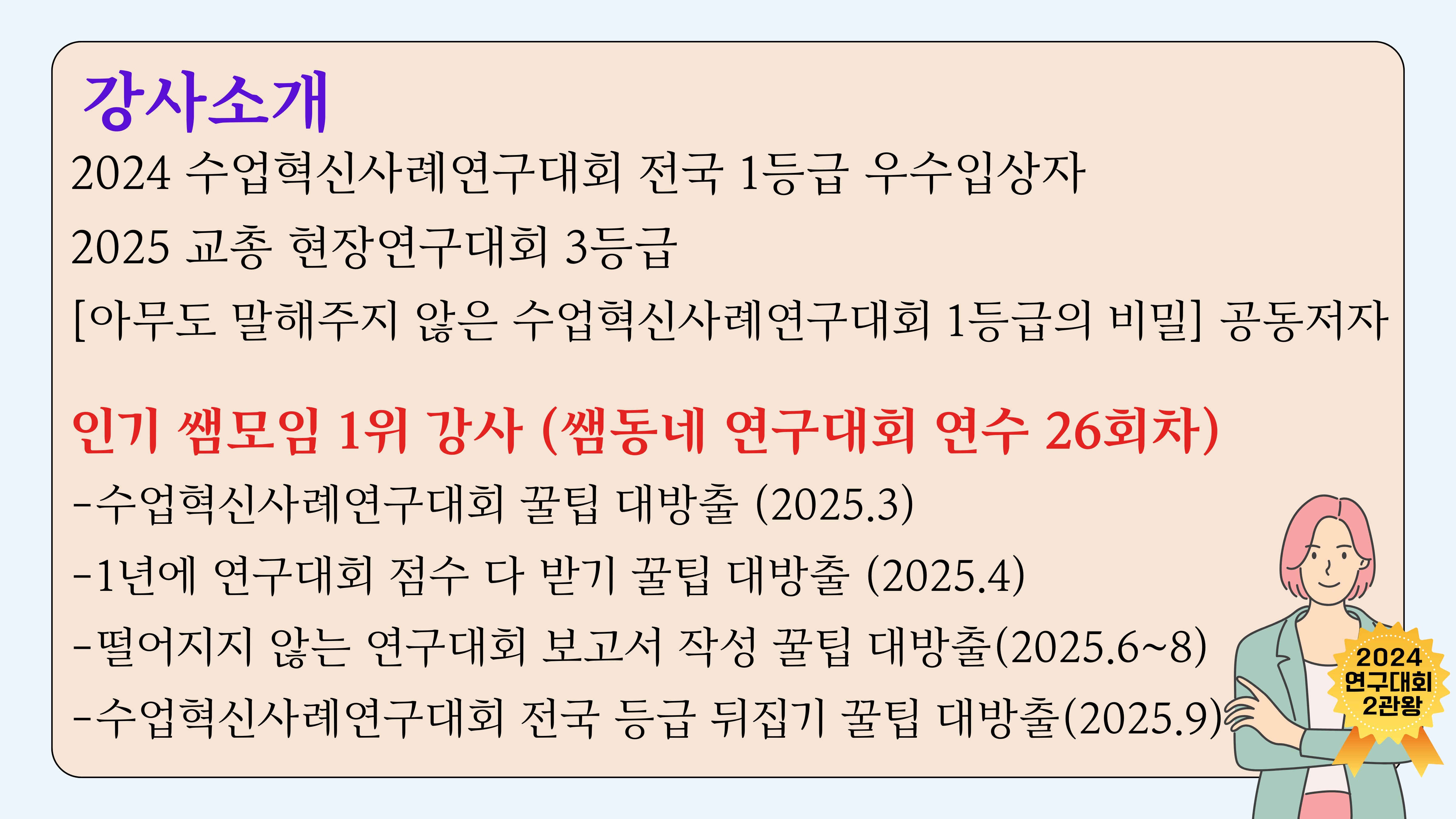 선생님의 효율적인 연구 점수 획득을 위해 2024 연구대회 2관왕의 비법, 모두 다~ 공개합니다!
