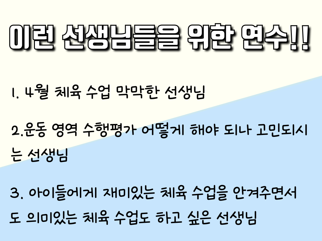 이제 4월을 맞이하여 신나는 체육 수업 노하우를 공유하려고 합니다.