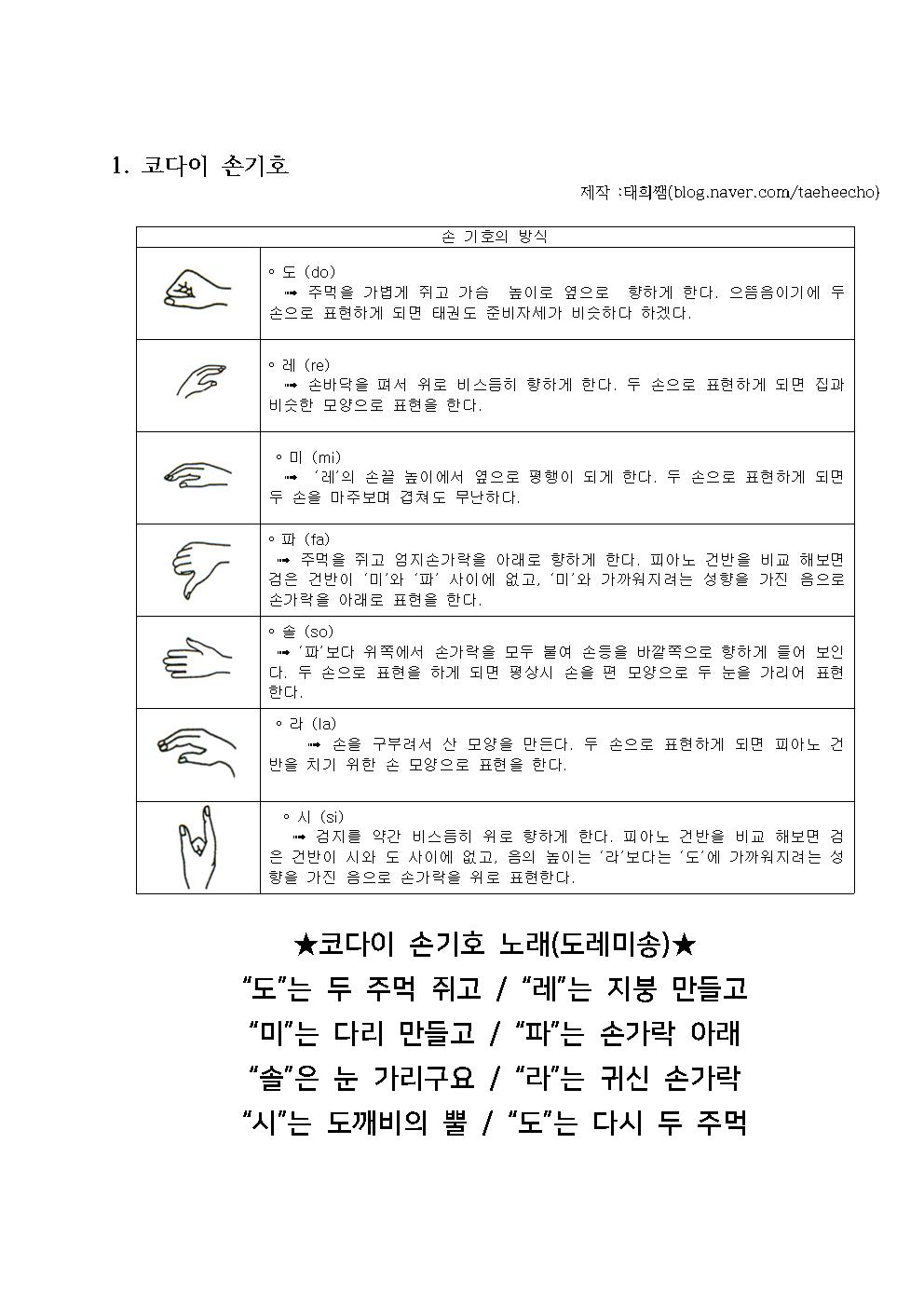 -도레미송 노래를 통해 코다이 손기호의 동작을 익힐 수 있습니다.