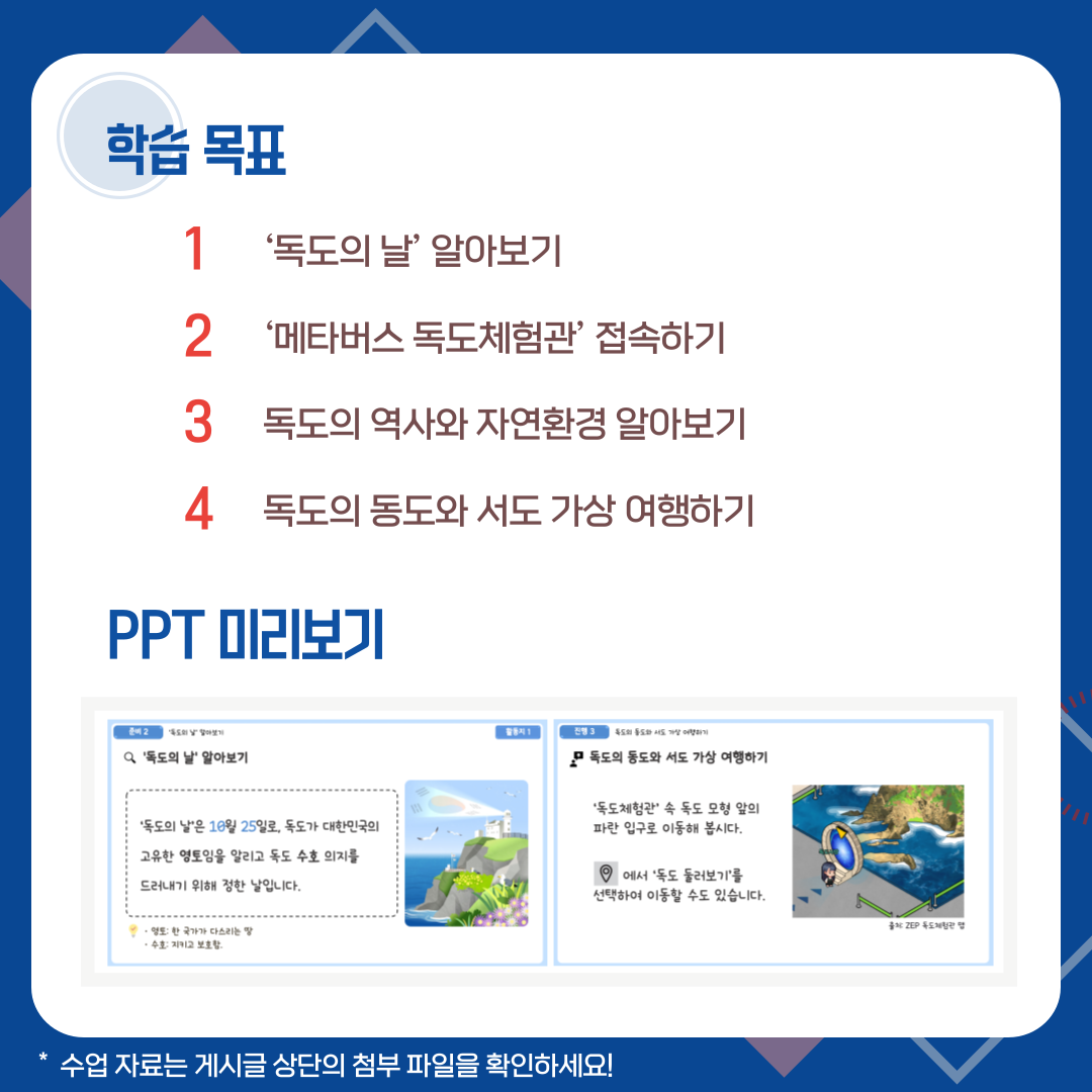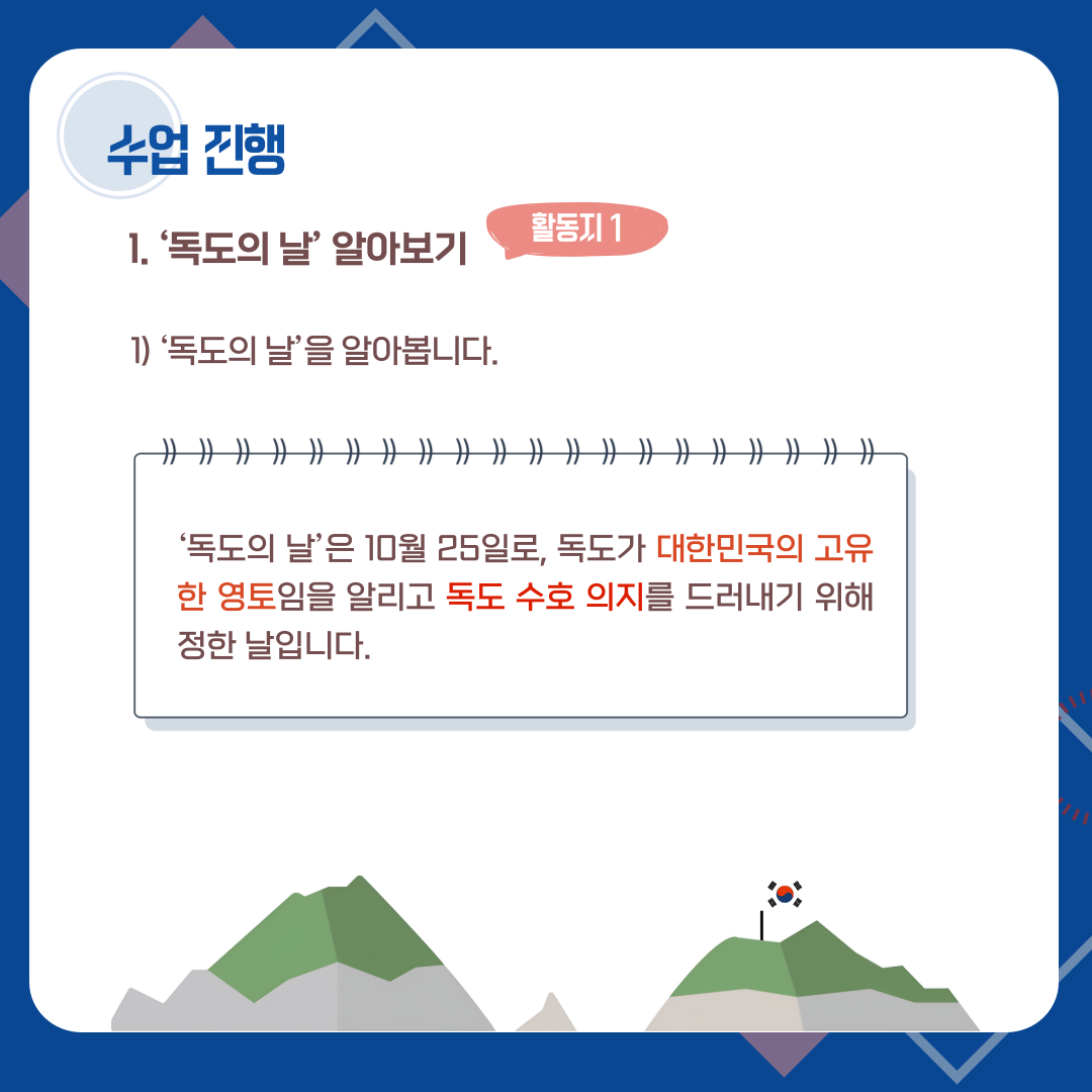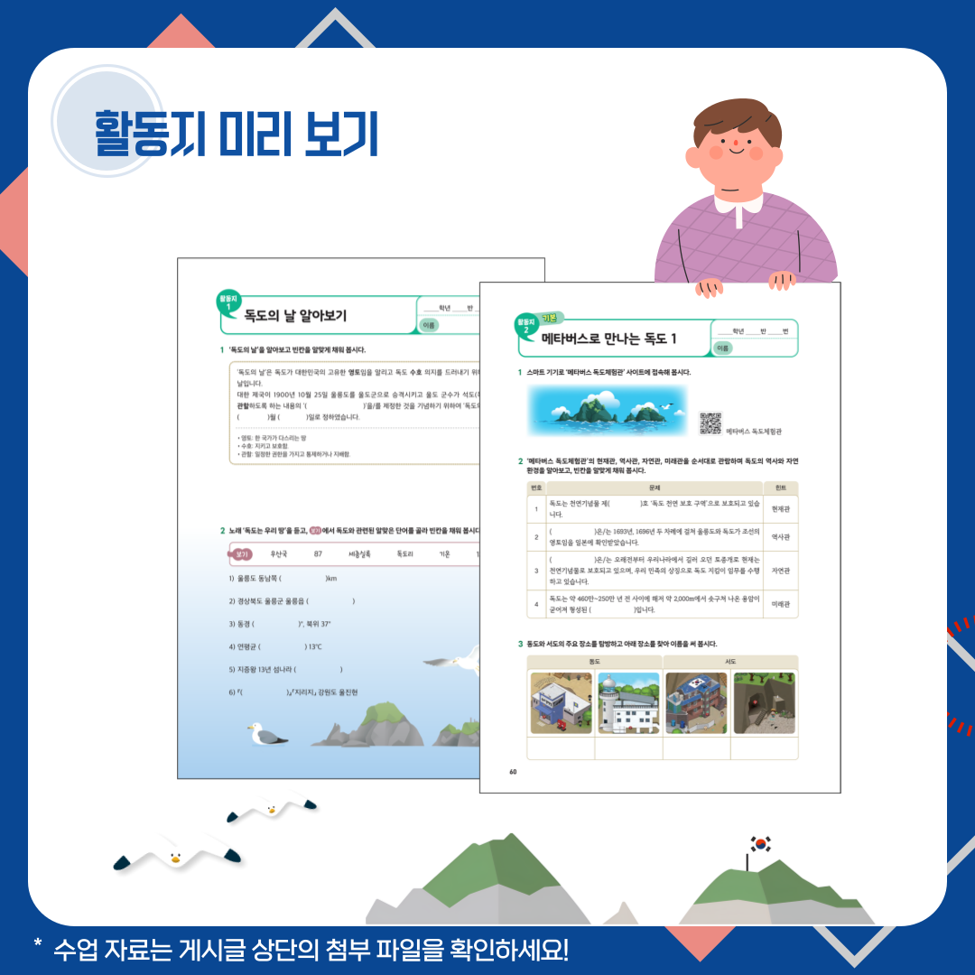🎉 첨부 파일 자료 구성: '독도의 날' 수업 PPT, 활동지(pdf, hwp) 제공