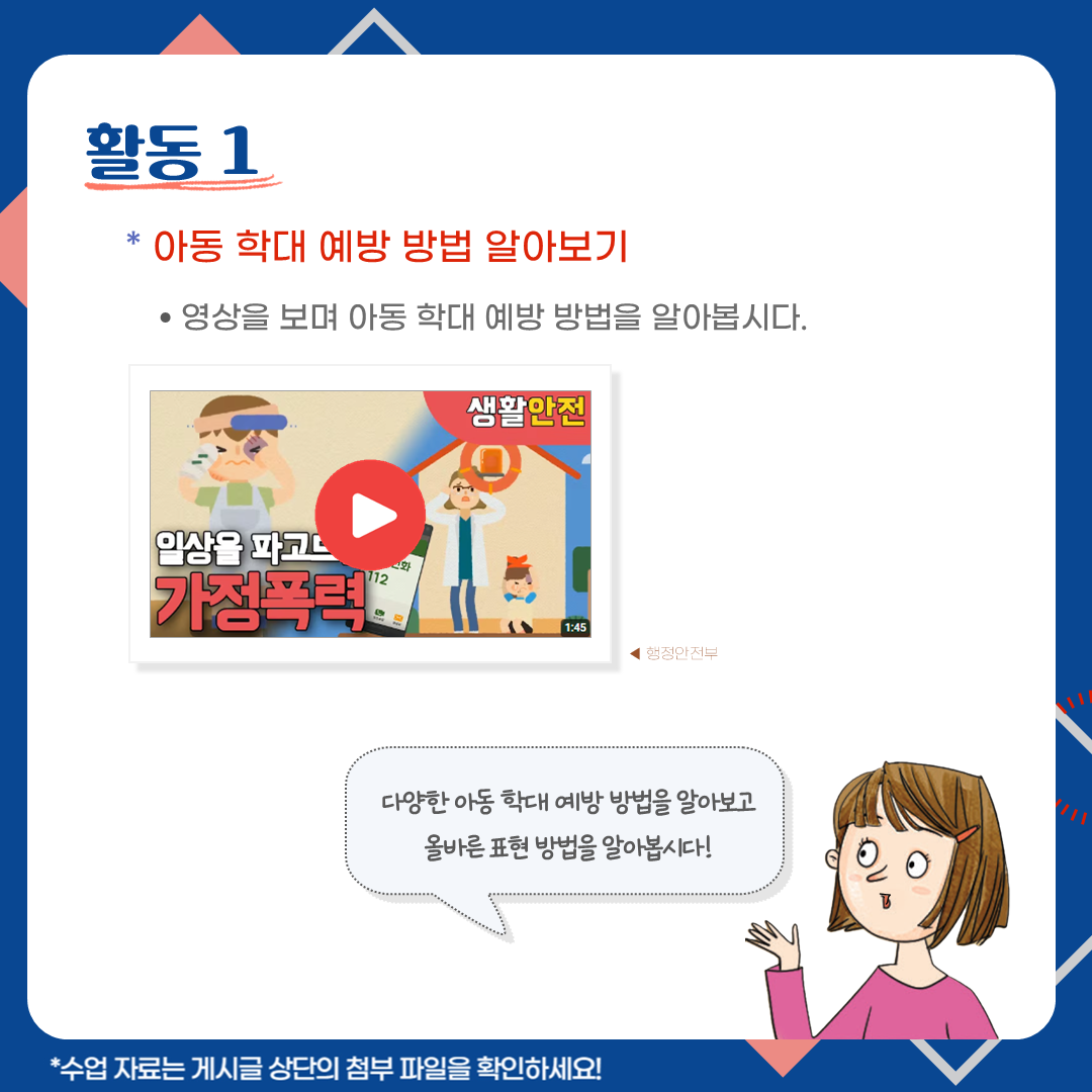 🎉 첨부 파일 자료 구성: ‘아동 학대 안 돼요’ 수업 PPT, 수업지도안, 활동지 제공