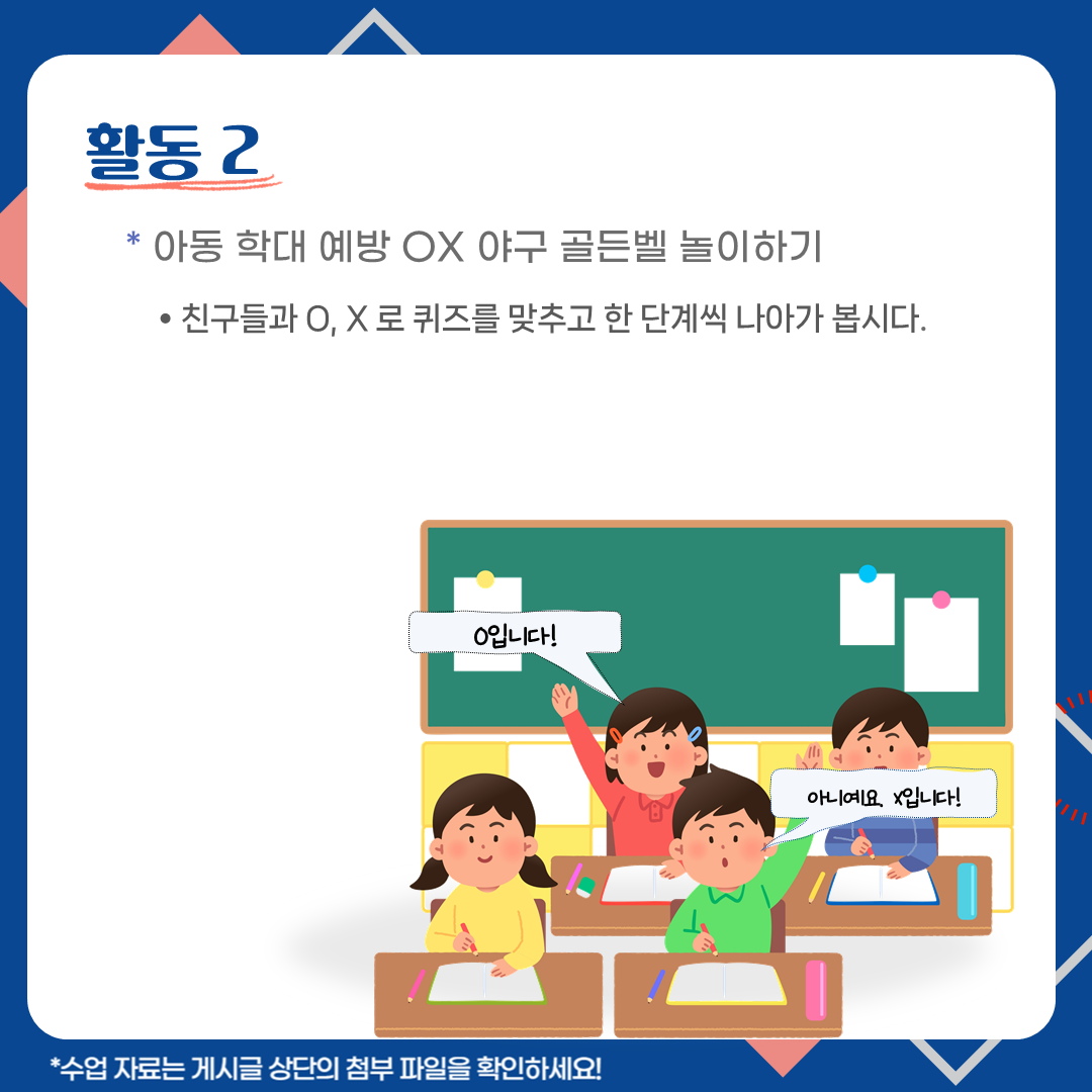영상 시청과 ox 야구 골든벨 활동을 통해