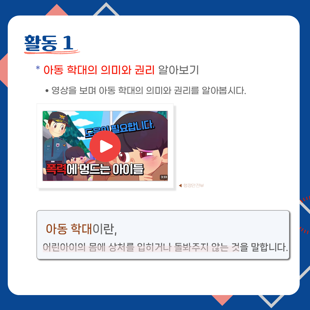 아동 학대의 유형과 예방법을 알아보고, 서로를 존중하는 마음을 길러봅시다.